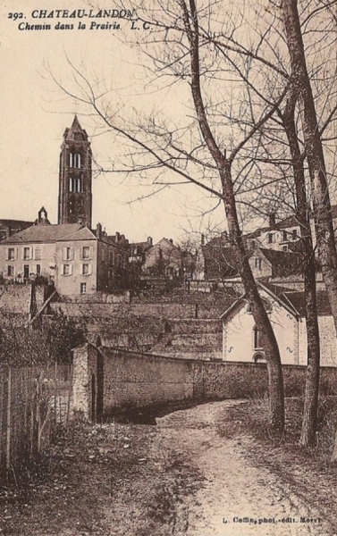 Plus à l’écart enfin, vers l’Ouest, à la sortie de la ville, se dresse la tour-porche de Saint-André(5 ), vestige d’un prieuré. Contentons-nous de citer ce qu’au début du XX° siècle écrivait l’abbé PREAU, curé de Château-Landon.