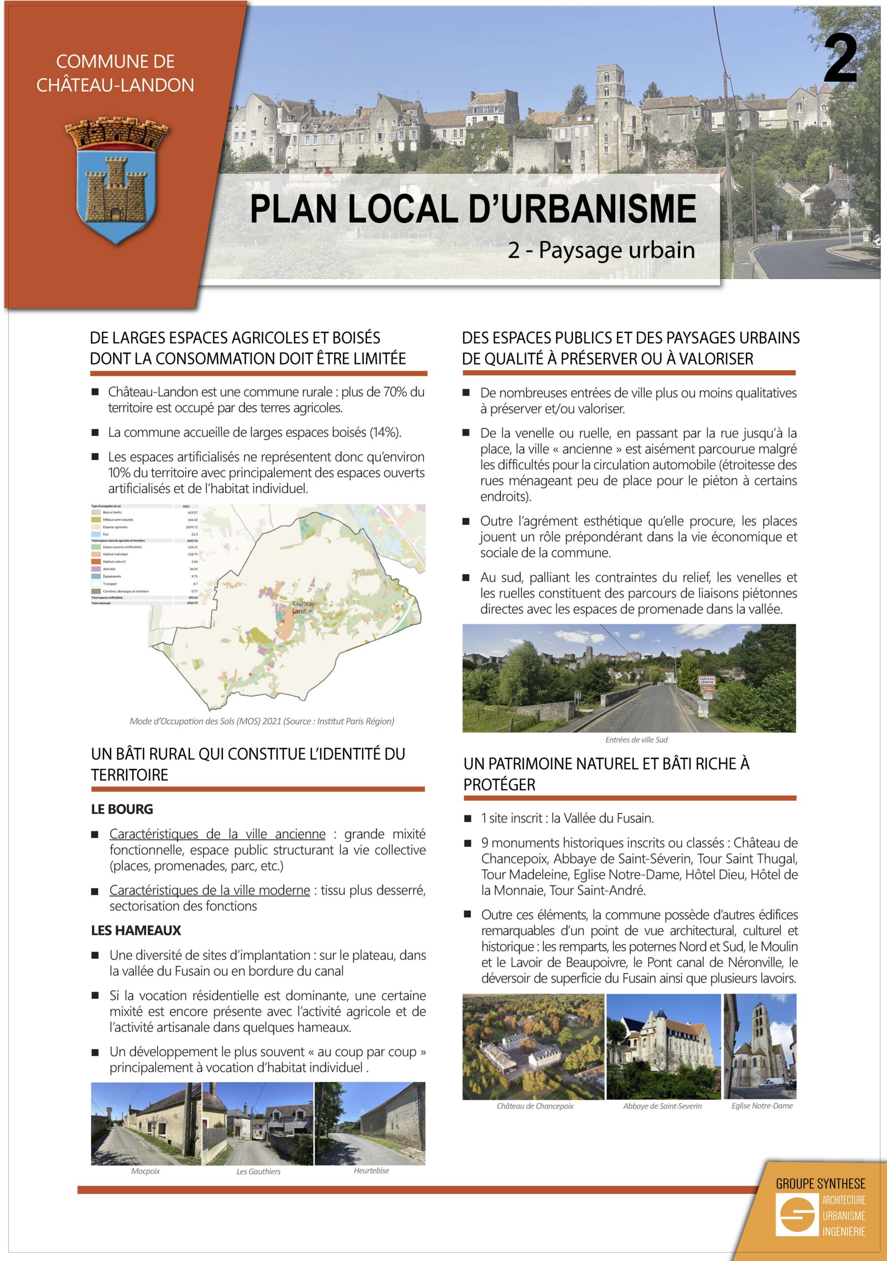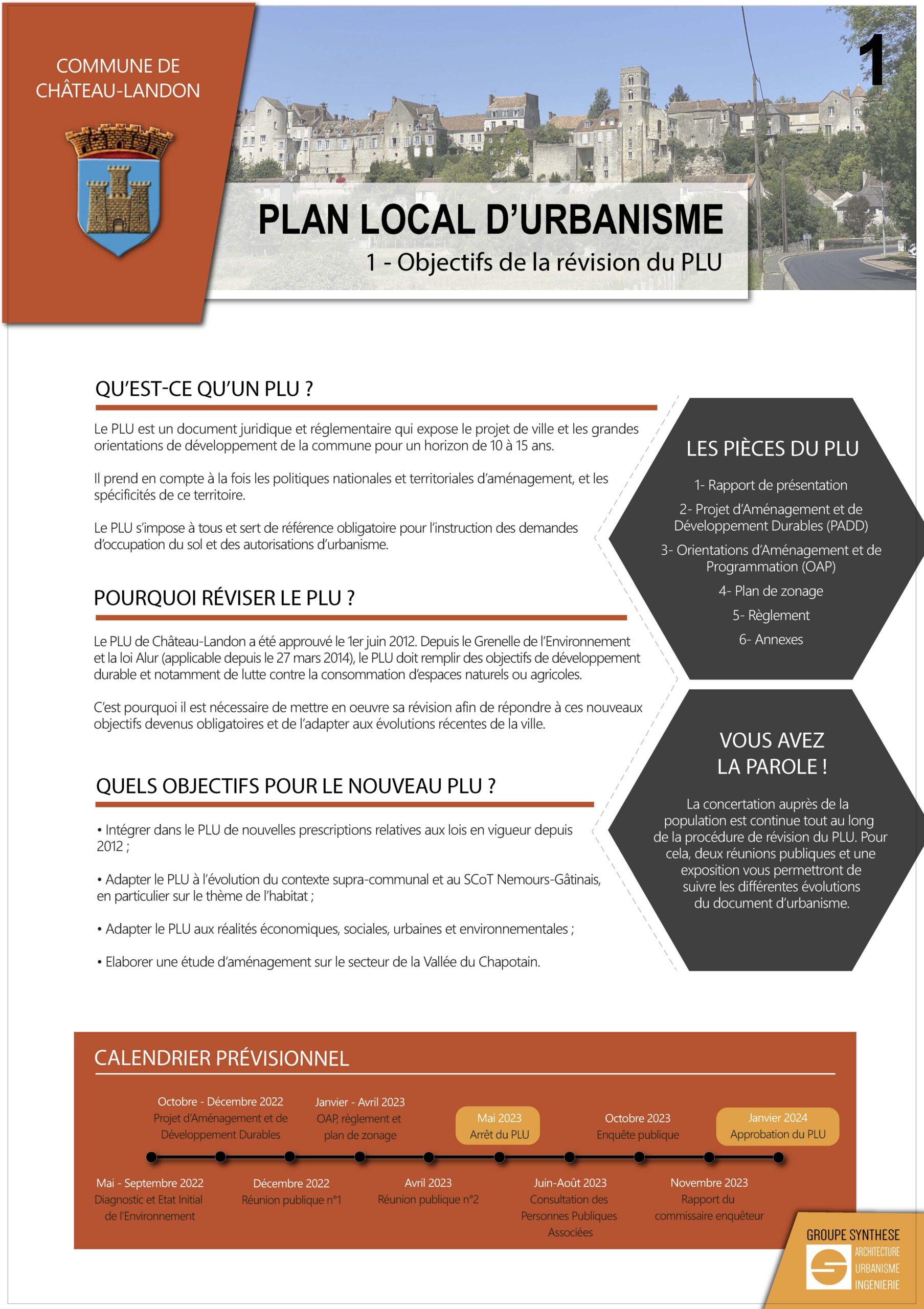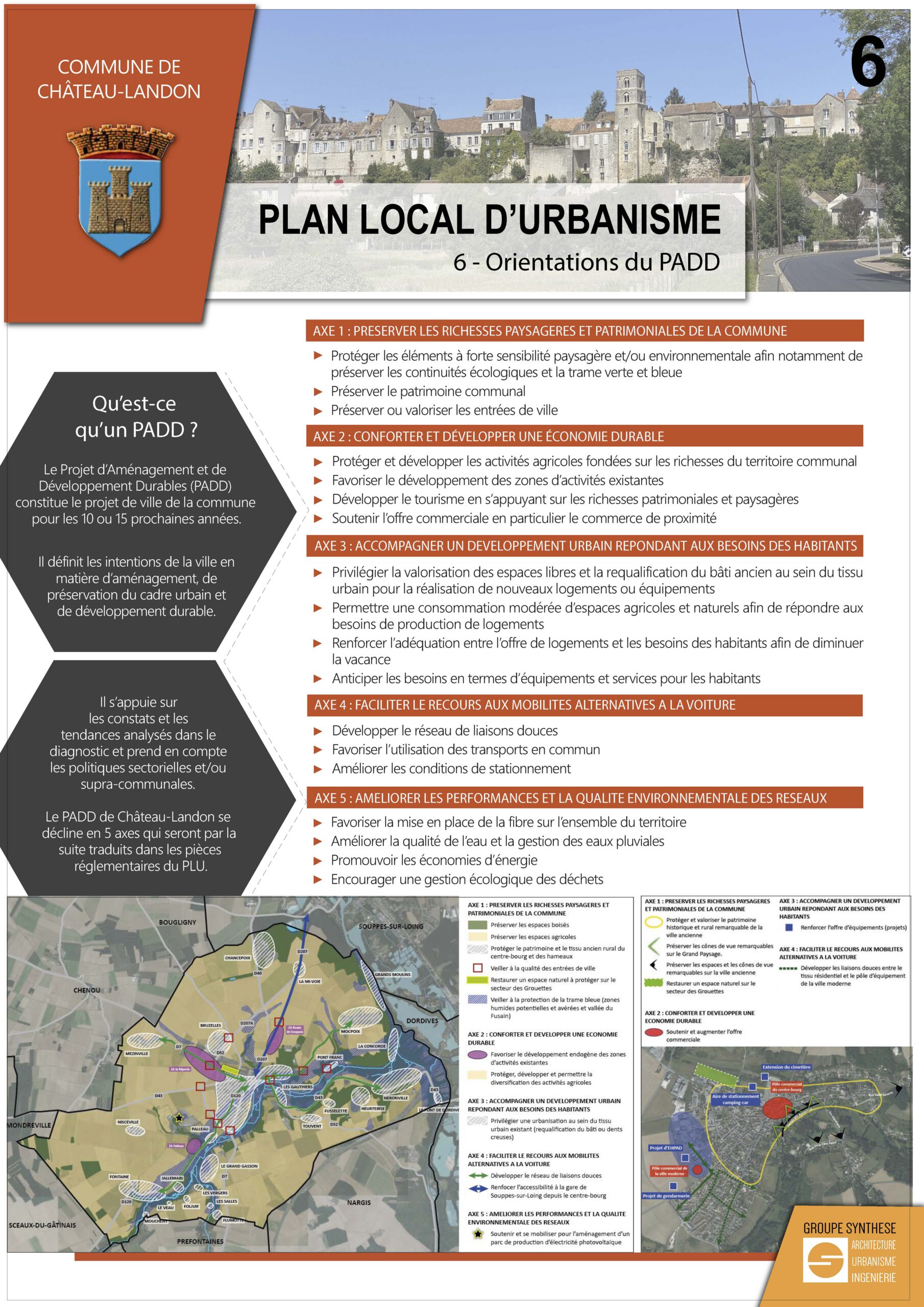 La Commune de Château-Landon par délibération du Conseil Municipal en date du 1er juin 2012 a approuvé son Plan Local d’Urbanisme. Ce document fixe de grandes orientations au niveau aménagement et urbanisme. Il vous sera, en autres, utile pour tout type de travaux ou aménagements sur votre terrain.